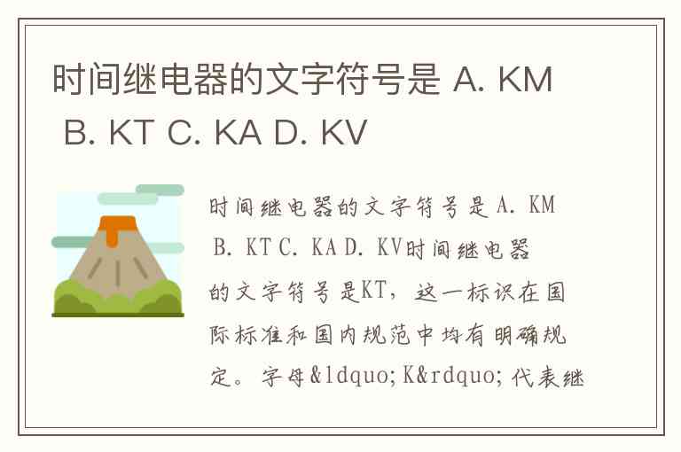 时间继电器的文字符号是 A. KM B. KT C. KA D. KV