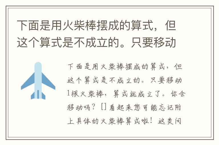 下面是用火柴棒摆成的算式,但这个算式是不成立的。只要移动1根火柴棒,算式就成立了。你会移动吗?[]