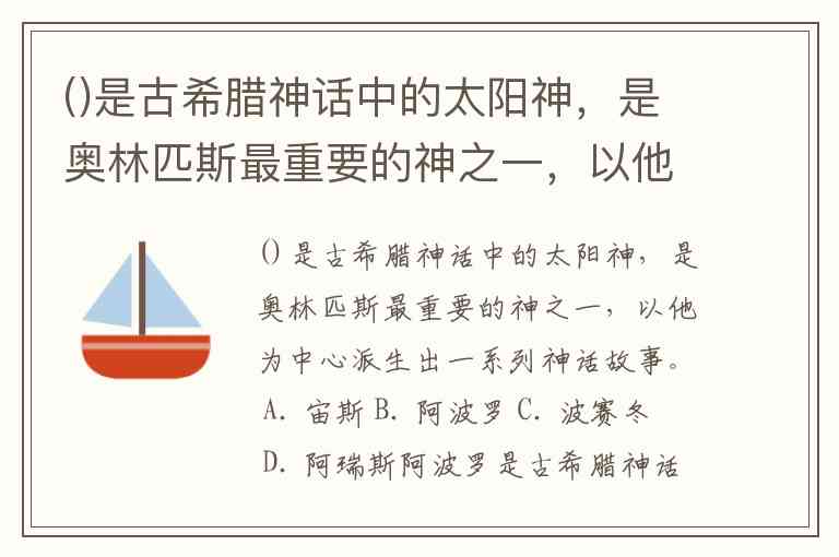 ()是古希腊神话中的太阳神,是奥林匹斯最重要的神之一,以他为中心派生出一系列神话故事。 A. 宙斯 B. 阿波罗 C. 波赛冬 D. 阿瑞斯