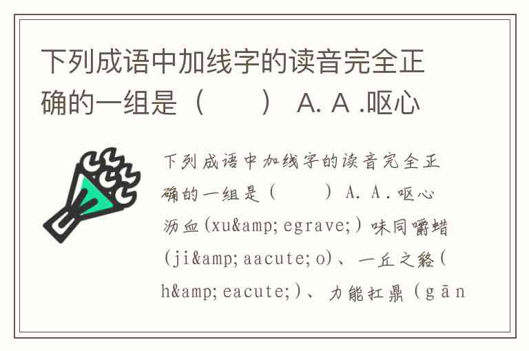 这类题目需特别注意多音字、形声字误读和古汉语遗留读音。例如“血”在口语中常读 xiě(如“血淋淋”),但在“呕心沥血”等书面语中必须读 xuè;“貉”易误读为 luò,但成语“一丘之貉”中固定读 hé。平时积累时可结合词义记忆,如“扛鼎”强调举重动作,故读 gāng 而非 káng(肩扛)。