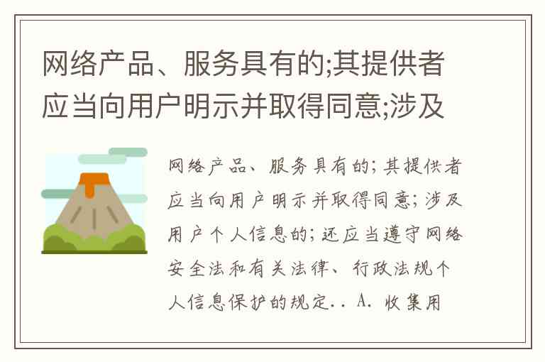 网络产品、服务具有的;其提供者应当向用户明示并取得同意;涉及用户个人信息的;还应当遵守网络安全法和有关法律、行政法规个人信息保护的规定.. A. 收集用户信息功能 B. 公开用户资料功能 C. 用户填写信息功能 D. 提供用户家庭信息功能