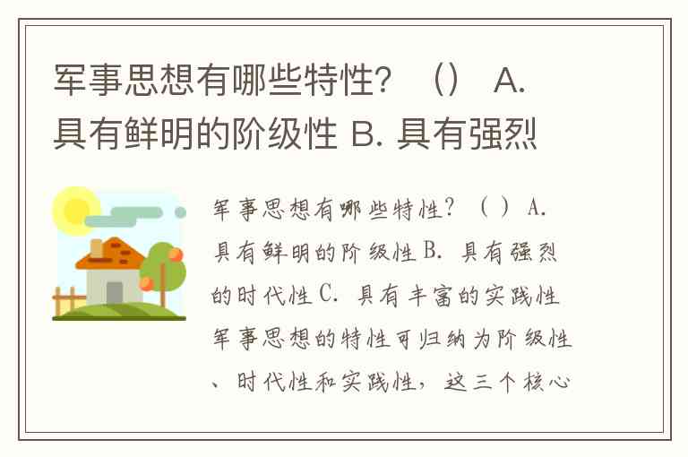 军事思想有哪些特性?() A. 具有鲜明的阶级性 B. 具有强烈的时代性 C. 具有丰富的实践性
