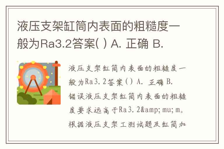 液压支架缸筒内表面的粗糙度一般为Ra3.2答案( ) A. 正确 B. 错误