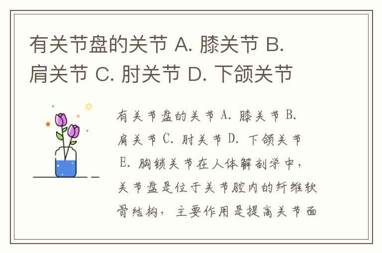 有关节盘的关节 A. 膝关节 B. 肩关节 C. 肘关节 D. 下颌关节 E. 胸锁关节