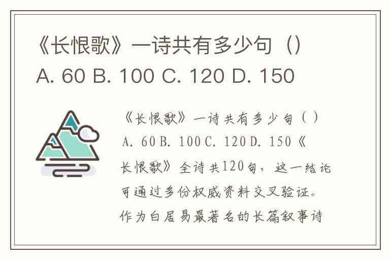 《长恨歌》一诗共有多少句() A. 60 B. 100 C. 120 D. 150