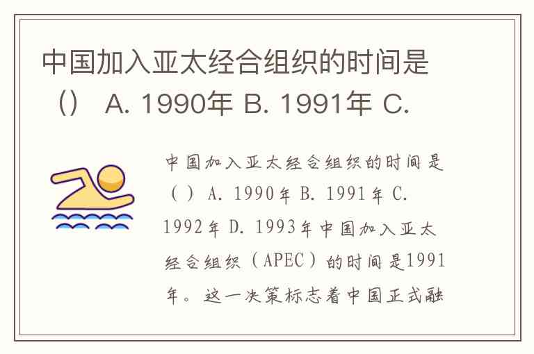 中国加入亚太经合组织的时间是() A. 1990年 B. 1991年 C. 1992年 D. 1993年