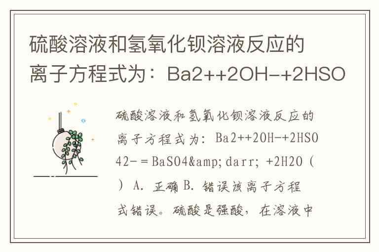 硫酸溶液和氢氧化钡溶液反应的离子方程式为:Ba2++2OH-+2HSO42-=BaSO4↓ +2H2O() A. 正确 B. 错误