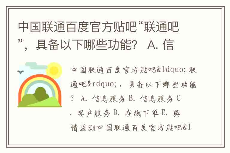 中国联通百度官方贴吧“联通吧”,具备以下哪些功能? A. 信息服务 B. 信息服务 C. 客户服务 D. 在线下单 E. 舆情监测