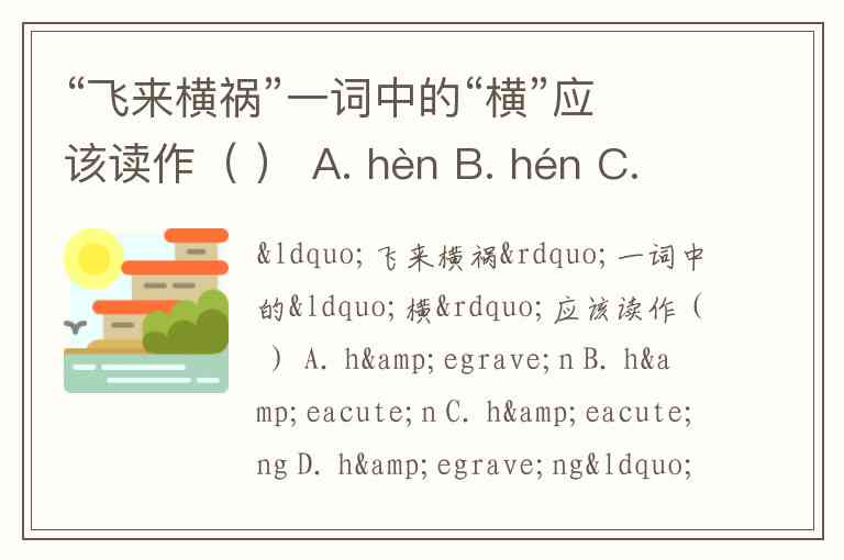 “飞来横祸”一词中的“横”应该读作( ) A. hèn B. hén C. héng D. hèng