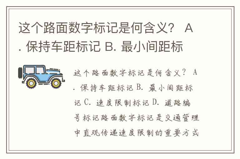这个路面数字标记是何含义? A. 保持车距标记 B. 最小间距标记 C. 速度限制标记 D. 道路编号标记