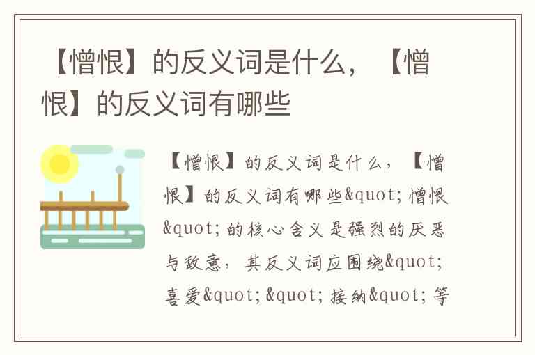 【憎恨】的反义词是什么,【憎恨】的反义词有哪些