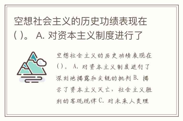空想社会主义的历史功绩表现在( )。 A. 对资本主义制度进行了深刻地揭露和尖锐的批判 B. 揭示了资本主义灭亡,社会主义胜利的客观规律 C. 对未来人类理想社会作出了天才构想 D. 为科学社会主义的创立提供了极为宝贵的思想材料