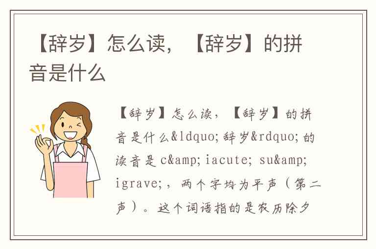 【辞岁】怎么读,【辞岁】的拼音是什么