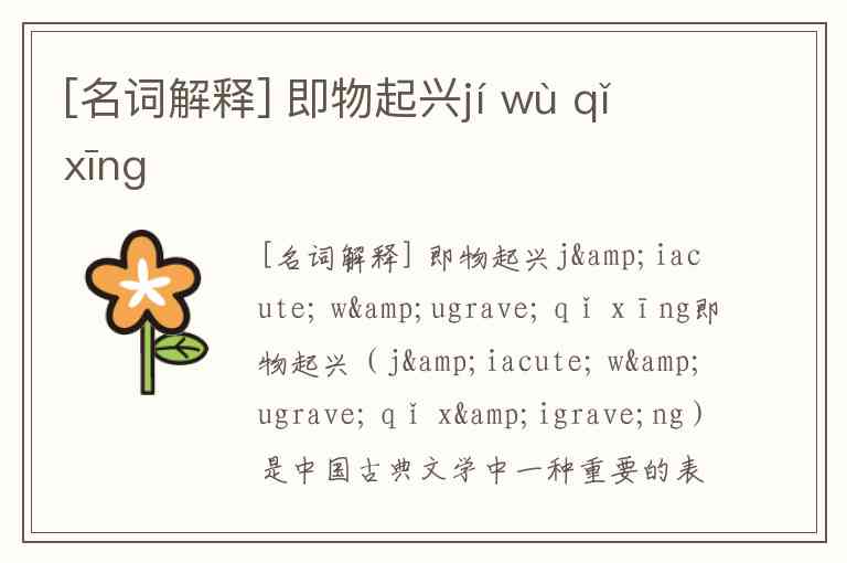即物起兴(jí wù qǐ xìng)是中国古典文学中一种重要的表现手法,核心在于通过描写眼前具体事物或景象,触发联想、诱发情感,进而引出作品的主题或思想。这种“由物及情”的创作方式,既增强了文学的画面感,又让抽象情感获得了具象依托,使读者更容易产生共鸣。