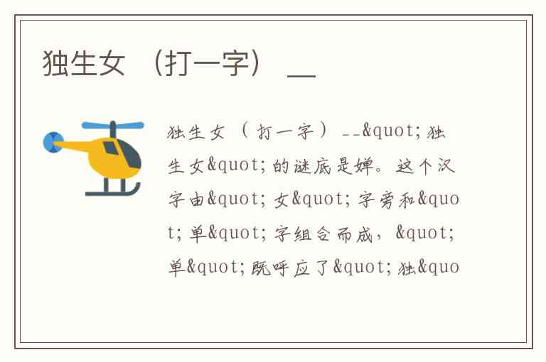 独生女 (打一字) __
