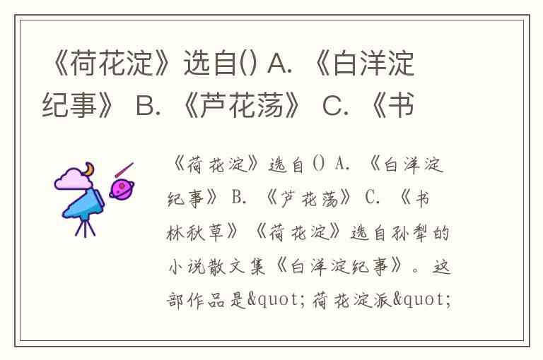 《荷花淀》选自() A. 《白洋淀纪事》 B. 《芦花荡》 C. 《书林秋草》