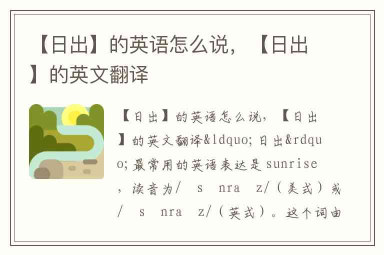 “日出”最常用的英语表达是 sunrise,读音为/ˈsʌnraɪz/(美式)或/ˈsʌnraɪz/(英式)。这个词由“sun”(太阳)和“rise”(升起)组合而成,直接对应“太阳升起”的自然现象。