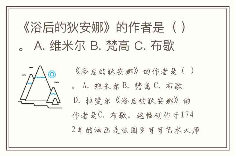 《浴后的狄安娜》的作者是( )。 A. 维米尔 B. 梵高 C. 布歇 D. 拉斐尔