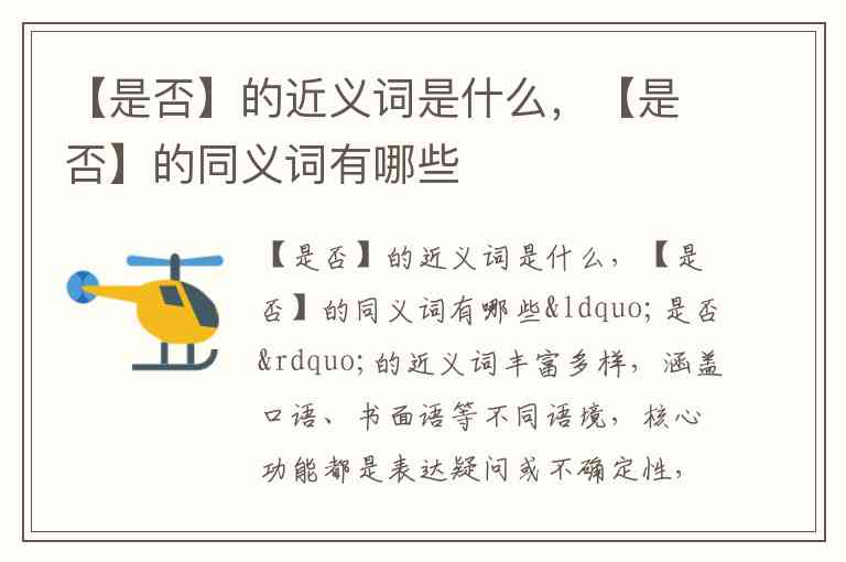 “是否”的近义词丰富多样,涵盖口语、书面语等不同语境,核心功能都是表达疑问或不确定性,但各有细微差异。常见的有“是不是”“可否”“能否”“有无”和“与否”,其中“是不是”更口语化,“可否”“能否”偏正式,“有无”多用于技术或书面场景,“与否”则常后置使用,如“成功与否”。