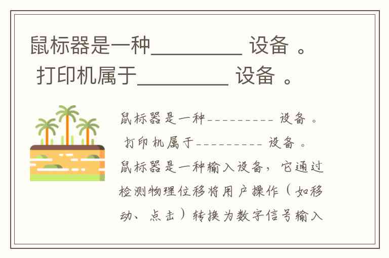 鼠标器是一种_________ 设备 。 打印机属于_________ 设备 。