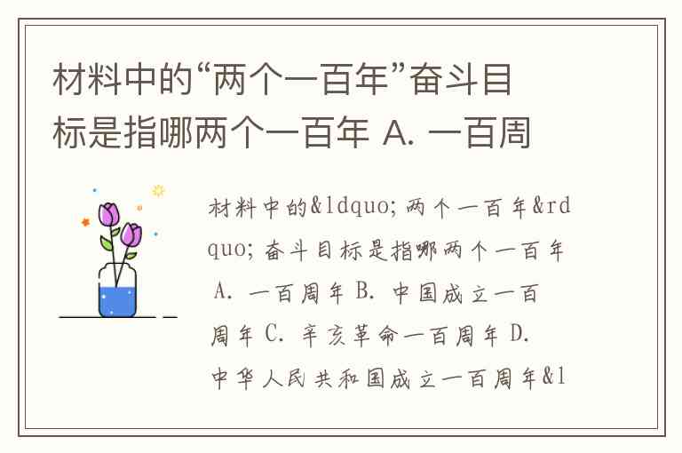 材料中的“两个一百年”奋斗目标是指哪两个一百年 A. 一百周年 B. 中国成立一百周年 C. 辛亥革命一百周年 D. 中华人民共和国成立一百周年