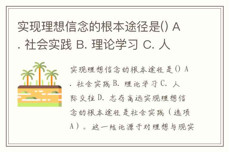 实现理想信念的根本途径是() A. 社会实践 B. 理论学习 C. 人际交往 D. 志存高远
