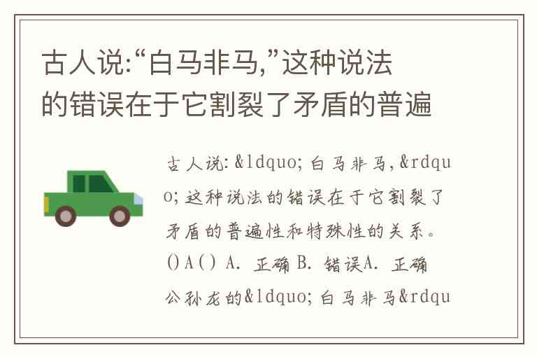 古人说:“白马非马,”这种说法的错误在于它割裂了矛盾的普遍性和特殊性的关系。()A( ) A. 正确 B. 错误