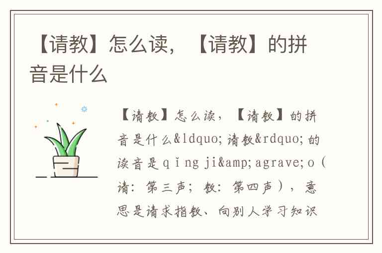 “请教”的读音是 qǐng jiào(请:第三声;教:第四声),意思是请求指教、向别人学习知识或技能时表达礼貌的询问。例如:“这个问题我不太明白,想向您请教一下。”