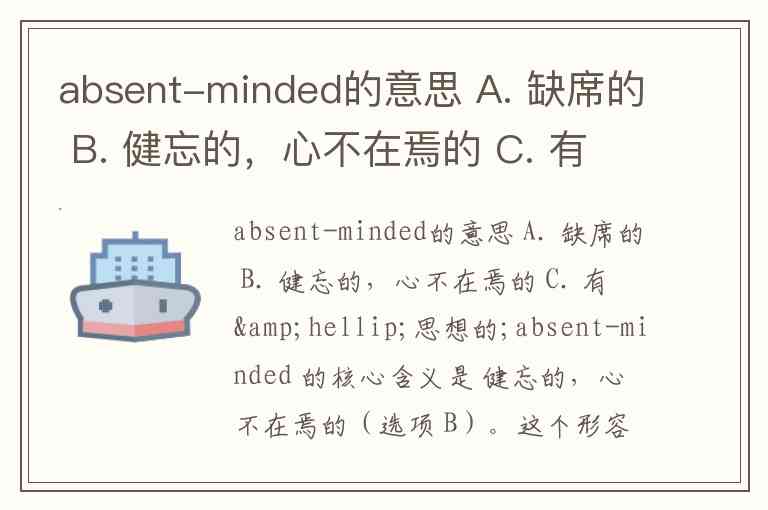 absent-minded的意思 A. 缺席的 B. 健忘的,心不在焉的 C. 有…思想的;