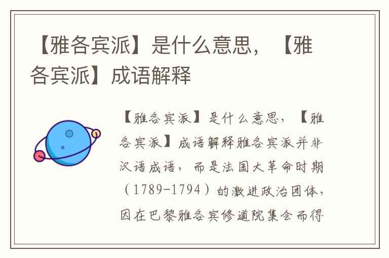 【雅各宾派】是什么意思,【雅各宾派】成语解释
