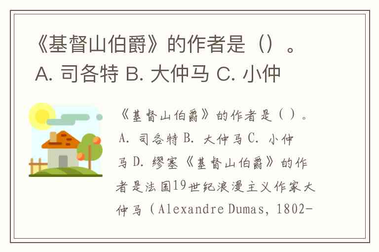 《基督山伯爵》的作者是()。 A. 司各特 B. 大仲马 C. 小仲马 D. 缪塞