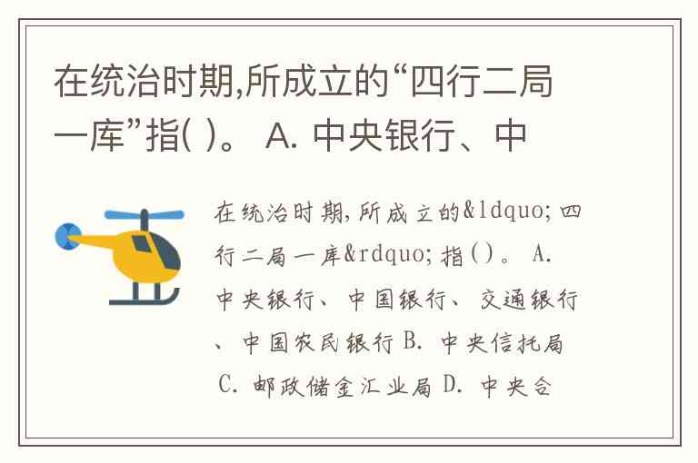 在统治时期,所成立的“四行二局一库”指( )。 A. 中央银行、中国银行、交通银行、中国农民银行 B. 中央信托局 C. 邮政储金汇业局 D. 中央合作金库 E. 中央储备金库