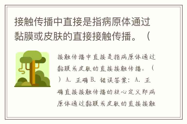 接触传播中直接是指病原体通过黏膜或皮肤的直接接触传播。() A. 正确 B. 错误