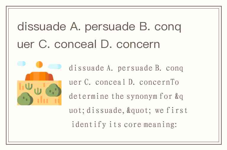 To determine the synonym for "dissuade," we first identify its core meaning: to persuade someone not to do something. Let’s analyze the options: