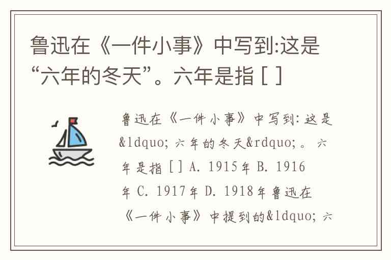 鲁迅在《一件小事》中写到:这是“六年的冬天”。六年是指 [ ] A. 1915年 B. 1916年 C. 1917年 D. 1918年