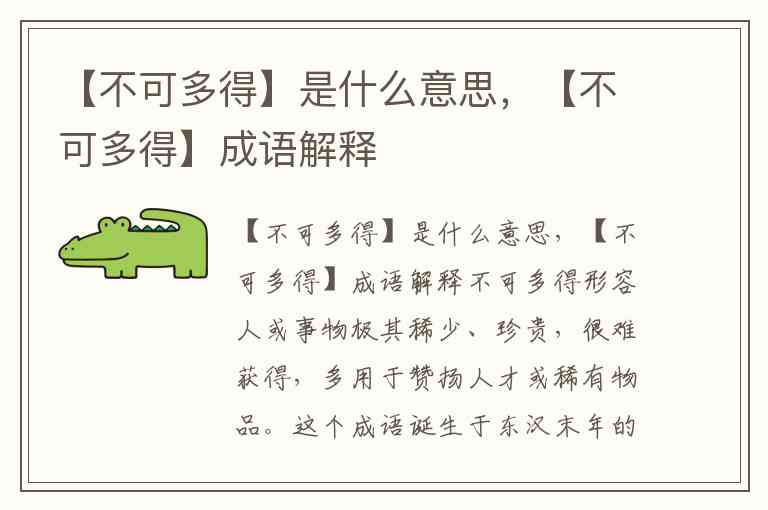 不可多得形容人或事物极其稀少、珍贵,很难获得,多用于赞扬人才或稀有物品。这个成语诞生于东汉末年的人才推荐语境,如今仍活跃在对杰出能力或罕见事物的评价中。