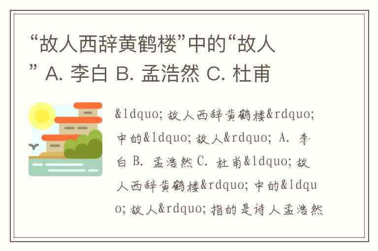 “故人西辞黄鹤楼”中的“故人” A. 李白 B. 孟浩然 C. 杜甫