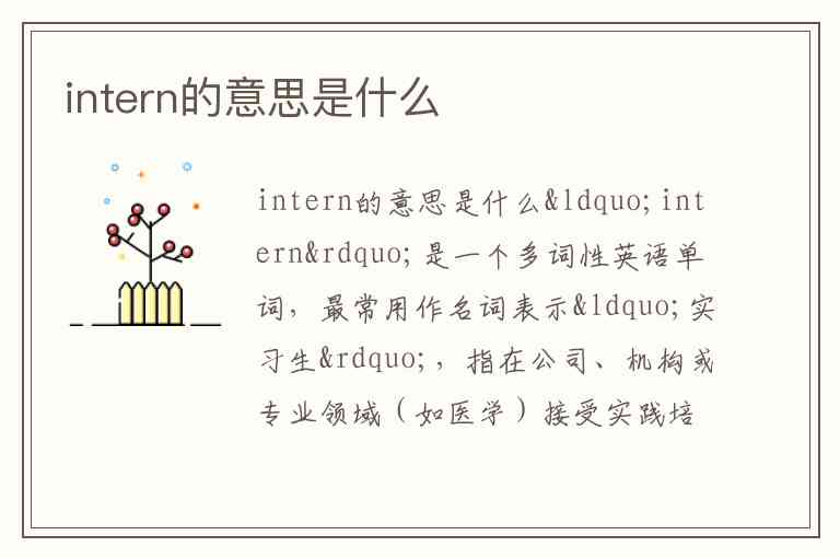 “intern”是一个多词性英语单词,最常用作名词表示“实习生”,指在公司、机构或专业领域(如医学)接受实践培训的学生或毕业生。例如:“She worked as an intern at a law firm during the summer.”(她暑假在一家律师事务所当实习生)。在医疗领域,它还特指“实习医师”,即接受住院培训的医生,如“medical intern”(住院实习医生)。