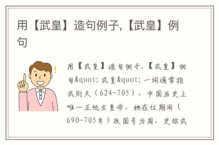"武皇"一词通常指武则天(624-705),中国历史上唯一正统女皇帝,她在位期间(690-705年)改国号为周,史称武周。以下是结合历史背景与文学语境的造句示例,展现不同语境下的用法: