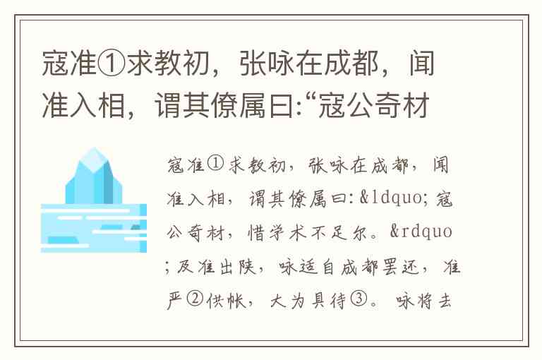 寇准①求教初,张咏在成都,闻准入相,谓其僚属曰:“寇公奇材,惜学术不足尔。”及准出陕,咏适自成都罢还,准严②供帐,大为具待③。 咏将去准送之郊问曰何以教准咏徐曰:“《霍光传》④不可不读也。”准莫喻其意,归,取其传读之,至“不学无术”,笑曰:“此张公谓我矣。”注释:①寇准:北宋政治家,景得元年②严:敬重。③具:备办;待: 接待。④《霍光传):载《汉书》,传末有“然光不学亡术,暗于大理”之语。下列各项中加点词的意思不正确的一项是( ) A. 闻准入相 闻:听说 B. 惜学术不足尔 尔:同“耳”,而已 C. 及准出陕 及:等到 D. 准莫喻其意 喻:比喻