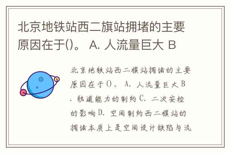 北京地铁站西二旗站拥堵的主要原因在于()。 A. 人流量巨大 B. 轨道能力的制约 C. 二次安检的影响 D. 空间制约