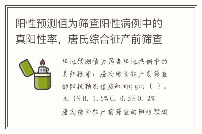 阳性预测值为筛查阳性病例中的真阳性率,唐氏综合征产前筛查的阳性预测值应≥( )。 A. 1% B. 1.5% C. 0.5% D. 2%