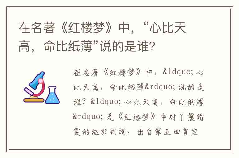在名著《红楼梦》中,“心比天高,命比纸薄”说的是谁?