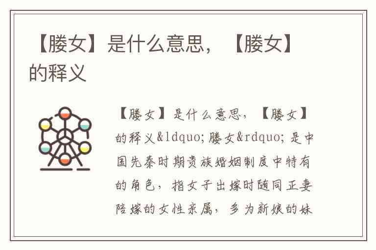 “媵女”是中国先秦时期贵族婚姻制度中特有的角色,指女子出嫁时随同正妻陪嫁的女性亲属,多为新娘的妹妹或侄女,形成“娶一赠一”的特殊婚嫁形式。这一制度源自远古妻姊妹婚遗俗,在周代发展为成熟的“娣媵制”,《仪礼·昏礼》明确记载“古者嫁女必以侄娣从,谓之媵”。