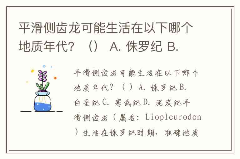 平滑侧齿龙可能生活在以下哪个地质年代?() A. 侏罗纪 B. 白垩纪 C. 寒武纪 D. 泥炭纪
