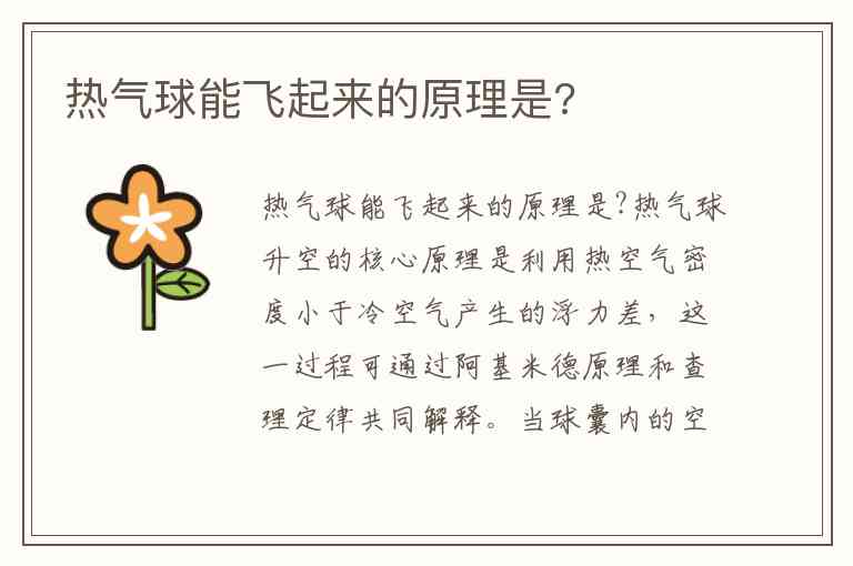 热气球能飞起来的原理是?