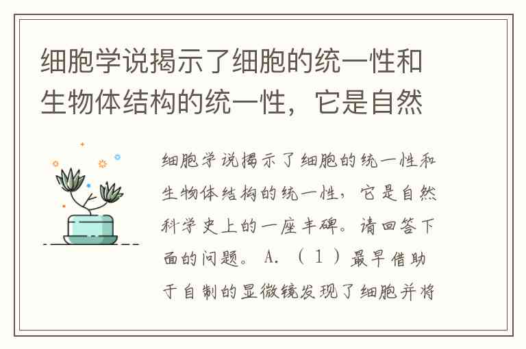 这一理论推倒了动植物界的壁垒,首次揭示了生物界的结构统一性。