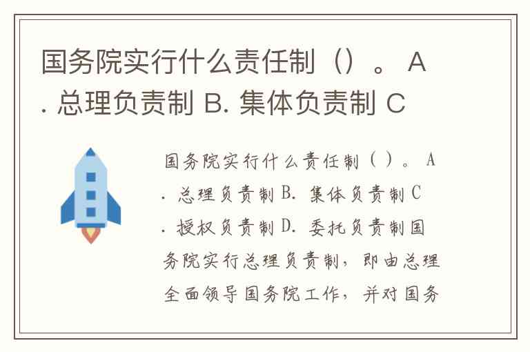 国务院实行什么责任制()。 A. 总理负责制 B. 集体负责制 C. 授权负责制 D. 委托负责制