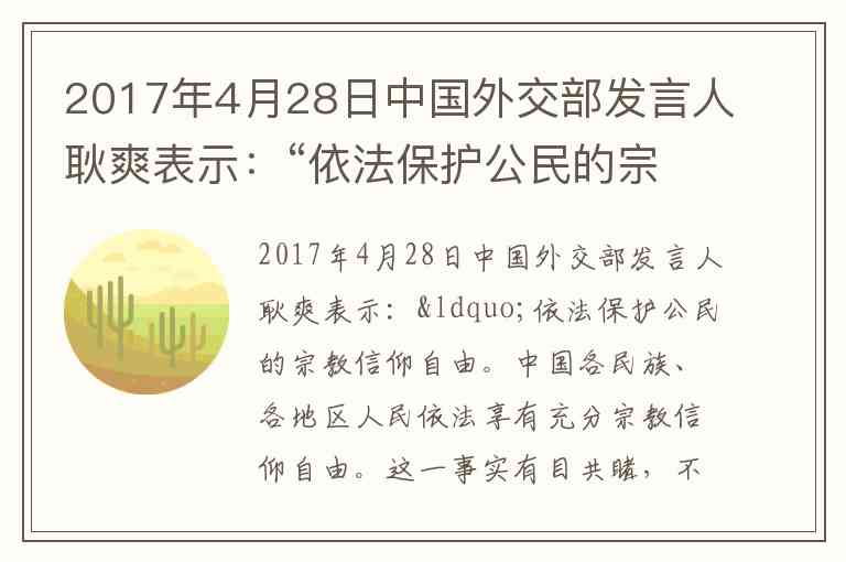 2017年4月28日中国外交部发言人耿爽表示:“依法保护公民的宗教信仰自由。中国各民族、各地区人民依法享有充分宗教信仰自由。这一事实有目共睹,不容置疑。”不能把政府依法管理宗教事务曲解为没有宗教信仰自由。依法管理宗教事务是 A. 依法治国的必要前提 B. 保护正常宗教活动的要求 C. 落实民族政策的基础 D. 用行政力量发展宗教的体现