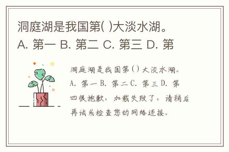 洞庭湖是我国第( )大淡水湖。 A. 第一 B. 第二 C. 第三 D. 第四